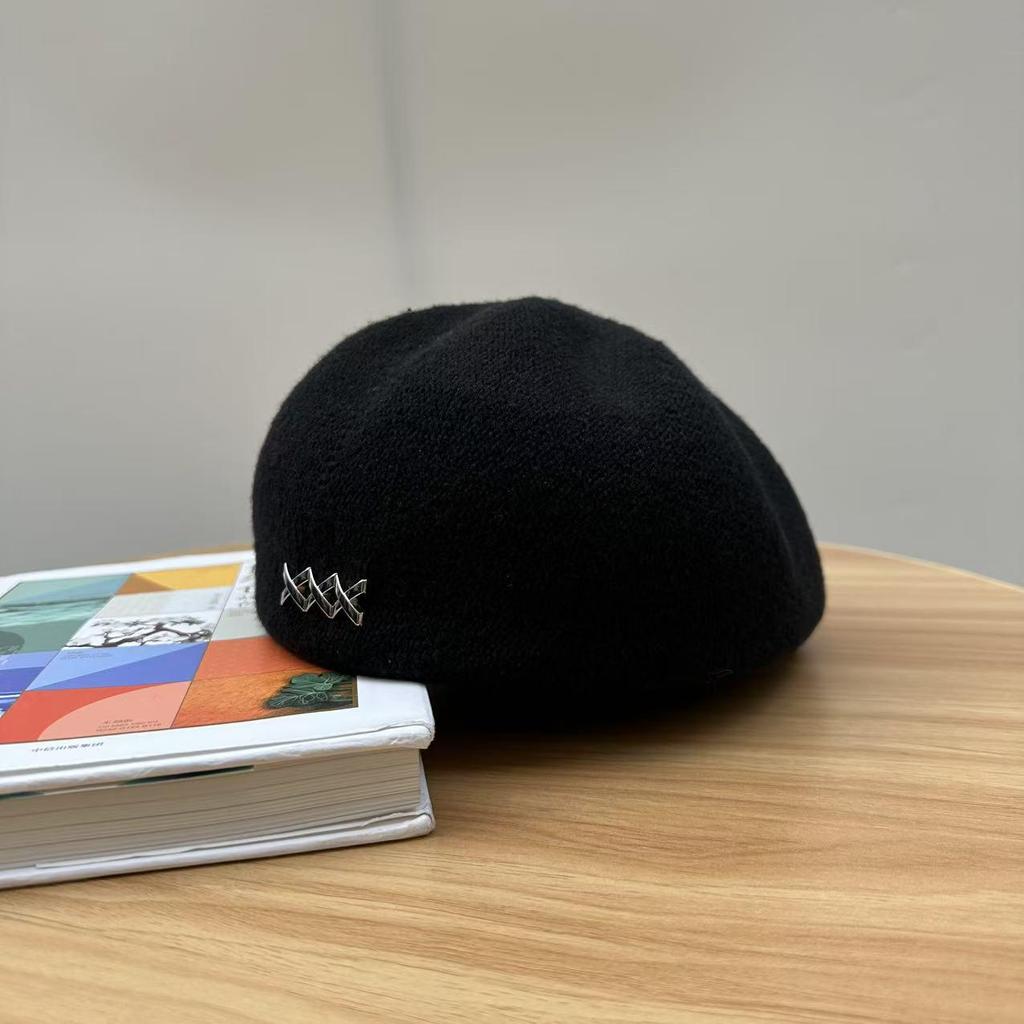 Korean Style Autumn/Winter Metal Label Reversible Beret for Women - Fashionable, Face-Slimming Newsboy Hat for Large Head Circumference