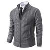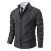 Stay warm and stylish this winter with our men's cardigan jacket, crafted from high-quality polyester for comfort and durability. This jacket features a stand-up collar and long sleeves, providing extra coverage against the cold. The thick knit design is enhanced with plush velvet on the inside for added warmth, while maintaining a standard thickness for easy layering. The jacket's sophisticated look makes it perfect for both casual outings and more formal occasions, offering a snug and fashionable fit for the colder months.