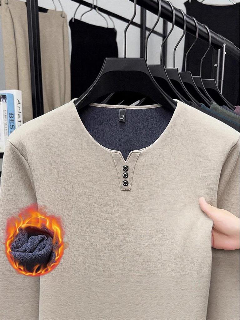 Introducing a stylish and comfortable addition to your autumn and winter wardrobe, this men's loose-fit, long sleeve t-shirt is perfect for keeping warm during colder months. Crafted from a high-quality cotton blend, its solid color design is complemented by a soft, plus velvet thickened interior, ensuring both warmth and a cozy feel. The versatile round neckline makes it an excellent base layer for any outfit, while its youth plus size design guarantees a relaxed and flattering fit. Ideal for casual wear, this t-shirt blends fashion with practicality, making it a must-have for any modern man.
