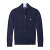 Elevate your wardrobe with this sleek and stylish cardigan sweater, perfect for the transitional seasons of spring and autumn. Featuring a slim fit design, it emphasizes a contemporary silhouette while ensuring comfort and warmth. The stand collar adds a touch of sophistication, making it a versatile choice for both casual and semi-formal occasions. Crafted from high-quality cotton, this knitwear offers a standard thickness that's ideal for layering. The long sleeves deliver additional warmth, and the sweater is subtly adorned with a small horse logo for a hint of timeless elegance.