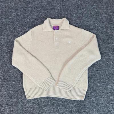 Corteiz Alcatraz Unisex Beige Lapel Knit Sweater with Fur Collar
