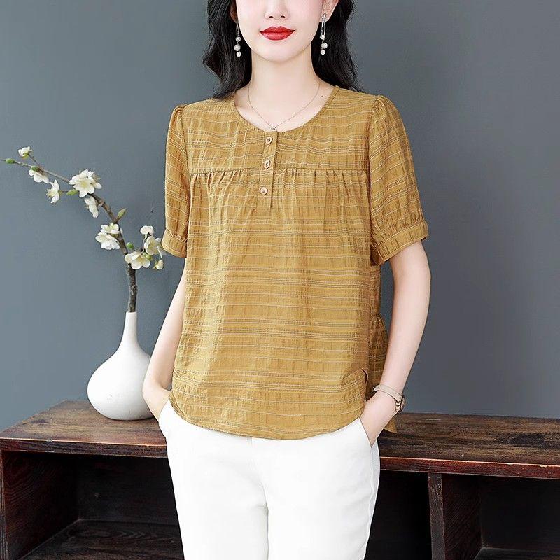 Cotton and Linen Short-sleeved Shirt for Women In Summer New Style Young Mother Fashionable Age-reducing Shirt Slim Top