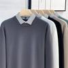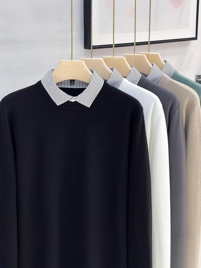 Elevate your autumn and winter wardrobe with this sophisticated faux two-piece striped sweater featuring a stylish shirt collar. Designed with a round neckline and long sleeves, this sweater offers a standard thickness perfect for layering. Crafted from high-quality polyester and core spun yarn, it ensures both comfort and durability. The versatile knit design makes it an ideal base layer, effortlessly blending style and practicality for a polished look in cooler seasons.