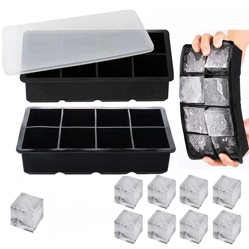 Ice Cube Tray Silicone Ice Mold Large Ice Cube Mold Square Ice Cube Maker Ice Cube Tray 4/6/8 Grid for Whiskey Cocktail Ice Mold