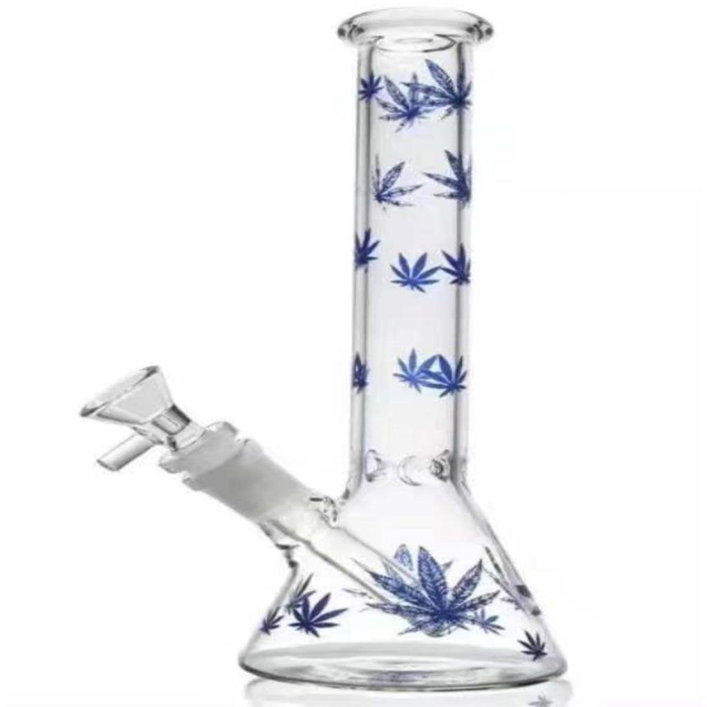 CBDfreaK Water Pipe with Ganja Pattern, Blue Erlenmeyer Flask, 27cm Tall, Glass Bong, Bongu Smoking Accessory, Water Pipe