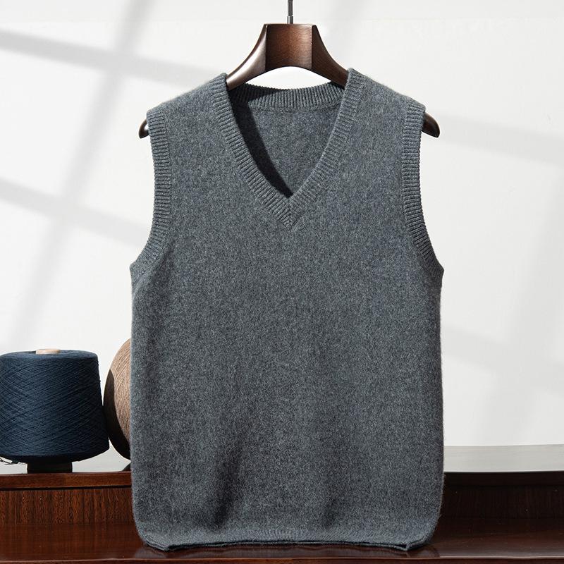 Elevate your wardrobe with this luxurious sleeveless cashmere vest, perfect for business casual settings. Designed with a loose fit, it features a classic V-neck and a standard thickness for comfortable layering. Its solid color and minimalist style make it a versatile addition to any outfit, providing both warmth and sophistication. Ideal for pairing with shirts or under blazers, this vest adds a touch of elegance to your ensemble.