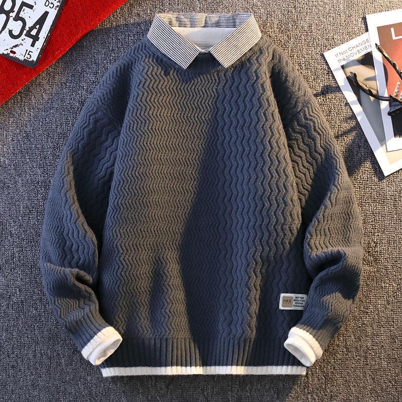 The 2024 Men's Autumn/Winter Loose Knit Sweater with Shirt Collar offers a stylish and cozy option for the colder months. Featuring a loose fit and a unique two-piece look, this sweater combines the comfort of a traditional knit with the sophisticated touch of a shirt collar. The round neckline and long sleeves provide a classic silhouette, while the soft, chemical fiber blended velvet ensures warmth and comfort. Made from high-quality viscose material, this sweater is both durable and breathable, making it a perfect addition to your winter wardrobe.