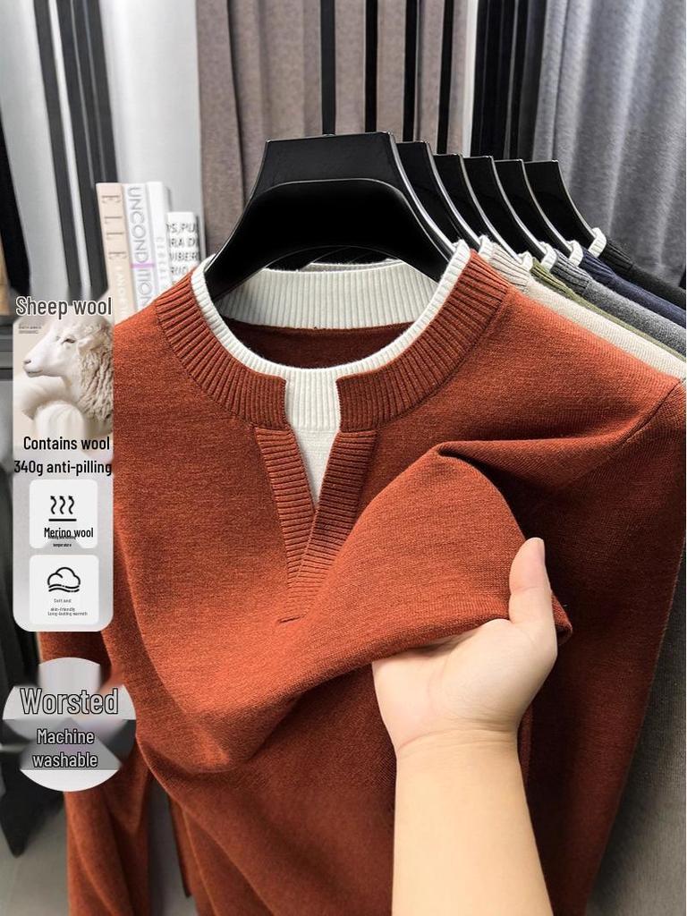 Elevate your autumn and winter wardrobe with this stylish and versatile men's sweater. Featuring a loose fit and a classic V-neck design, this sweater offers a casual yet refined look for any occasion. The long sleeves provide ample coverage, making it ideal for layering during cooler months. Crafted from lightweight acrylic material, it ensures comfort and ease of movement. The faux two-piece design adds a unique touch, while the chemical fiber blended material gives it a sleek finish. Perfect as a base layer, this sweater is a must-have addition to your seasonal collection.