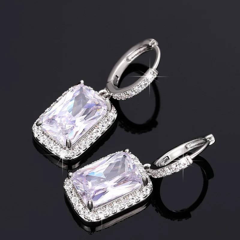 Vintage Sterling Silver Shinning AAA Zircon Earrings for Women Trendy Earring Prevent Allergy Party Accessories Gift