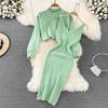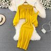 Celebrity Style Round Neck Beaded High Waist Short Open Bellybutton Sweater Two Piece Spicy Girls Knitted Tank Top Dress Women