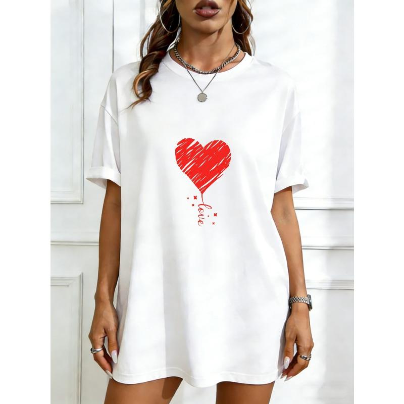 Oversized T Shirt Dress Black Heart Balloon Love Print Casual Wear For Women