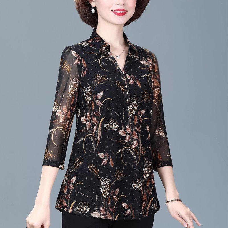 Fashionable Shirt with Lapel Short Sleeves Versatile and Noble Pullover Elegant Printed Retro Style Top