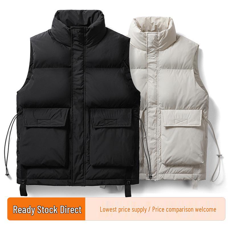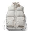 Stay warm and stylish with this unisex duck down vest, designed in a trendy Korean style. Featuring a loose fit for maximum comfort, this insulated outerwear is perfect for the winter season. Its solid color pattern ensures a sleek and versatile look, while the stand collar adds a touch of modern elegance. The vest is equipped with a zipper closure for easy wear, and both the exterior and fur materials are made from durable polyester, ensuring long-lasting quality and warmth without sacrificing style. Ideal for layering or wearing on its own, this sleeveless jacket is a must-have addition to your winter wardrobe.