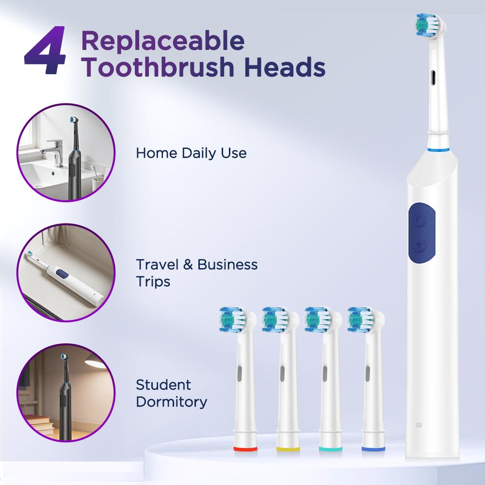 Rotating Electric Toothbrush for Adults 5 Cleaning Mode USB Rechargeable Sonic Toothbrush With 4pcs Replace Heads Smart Timer