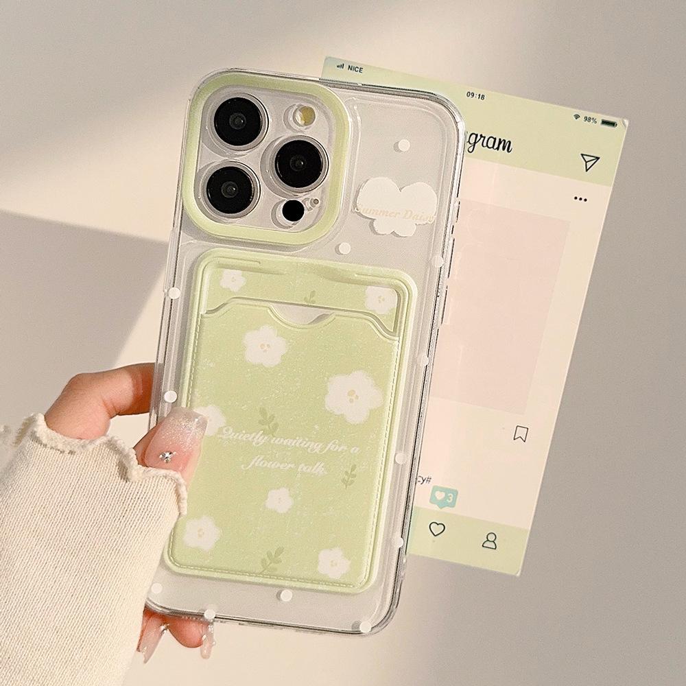 Korean Cute Flower Wallet Card Bag Phone Case For iPhone 17 16 15 14 13 12 11 Pro X XR XS Max 8 7Plus Lens Protection Soft Cover