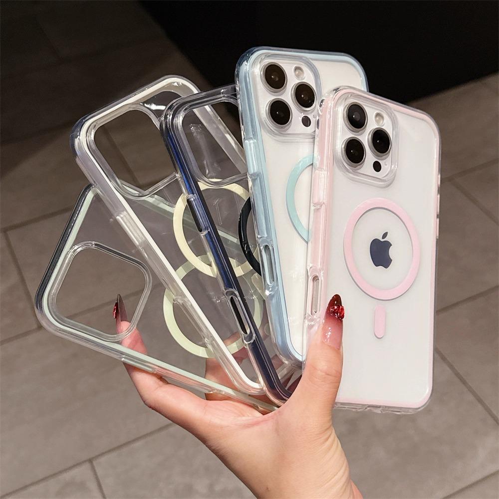 Luxury Transparent Magsafe Phone Case For iPhone 16 15 14 13 12 11 Pro Max Plus Clear Magnetic Bumper Back Cases Cover