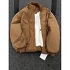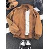 Introducing a stylish autumn/winter jacket designed for the modern man. This trendy brown piece embodies a baseball-inspired style with its stand collar and long sleeves, perfect for embracing cooler weather. Crafted from high-quality polyester, the jacket offers a lightweight feel while keeping you comfortably warm. The sleek, thin outerwear design effortlessly combines fashion with functionality, making it an ideal choice for those seeking a minimalist yet fashionable layer. Whether for casual outings or a touch of sporty elegance, this jacket complements any look with ease.