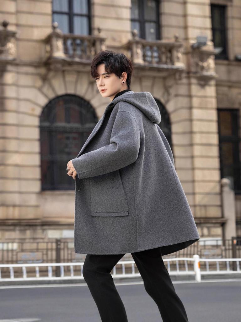 Discover the ultimate in winter style and comfort with this men's mid-length wool hooded coat from the 2025 Winter Collection. Crafted with a double-sided design, this thickened windbreaker jacket features a fusion of 70% wool and 30% polyester fiber, offering exceptional warmth and durability. The coat boasts a loose fit for relaxed layering and a solid pattern for a timeless look. Its insulated build ensures you stay cozy in cold temperatures, while the hooded neckline adds extra protection against the wind. Ideal for elevating your winter wardrobe with a touch of sophistication.