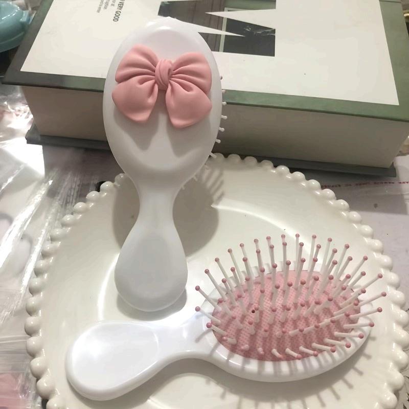 Cute Bow Mini Hairbrush - Portable Folding Pad Comb with Air Bag, Massage Hairbrush with Pink Bow Design, Hair Styling Tool