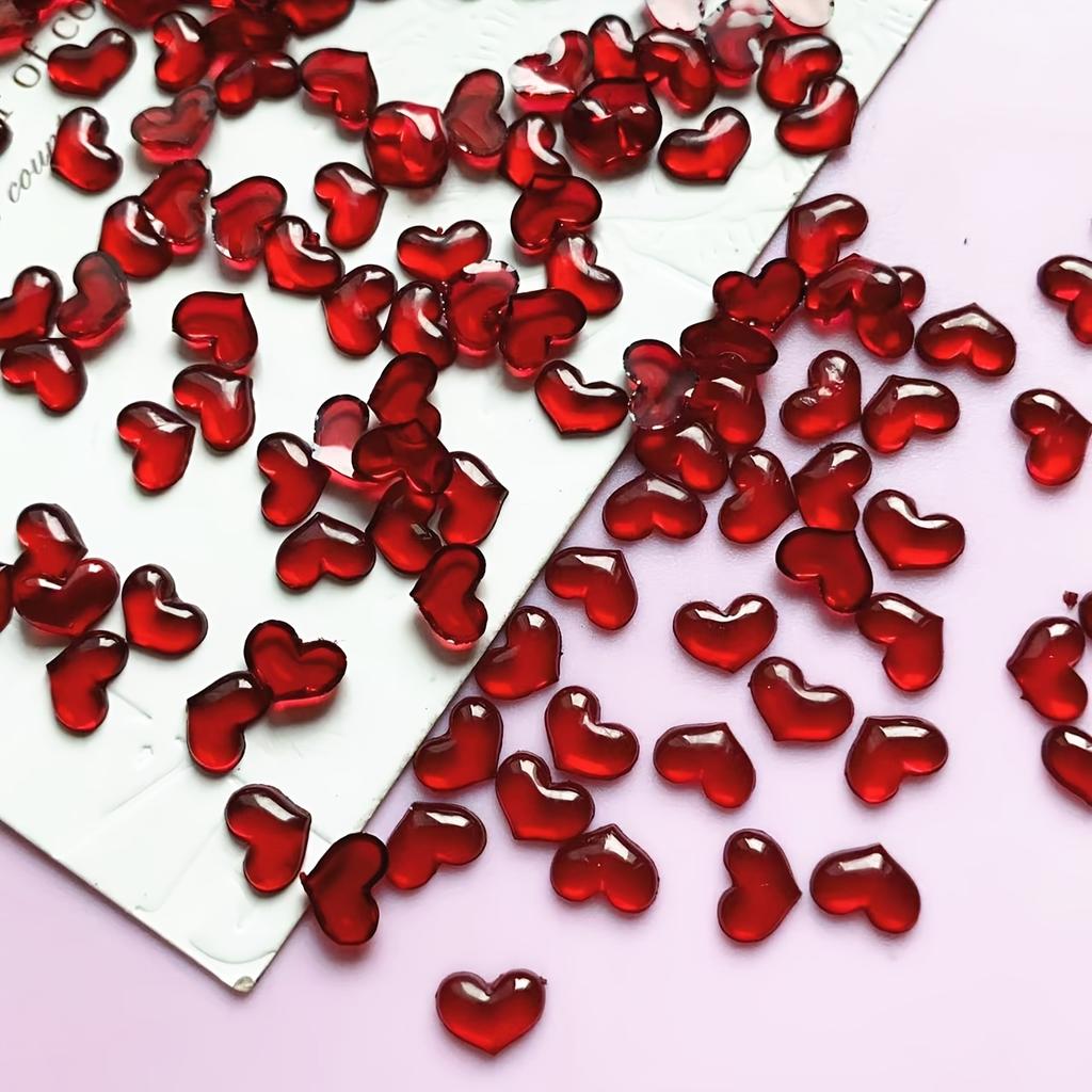 100pcs Valentine's Day 3D Red Heart Nail Charms - Scent-Free, DIY Manicure Decorations for Hands & Feet