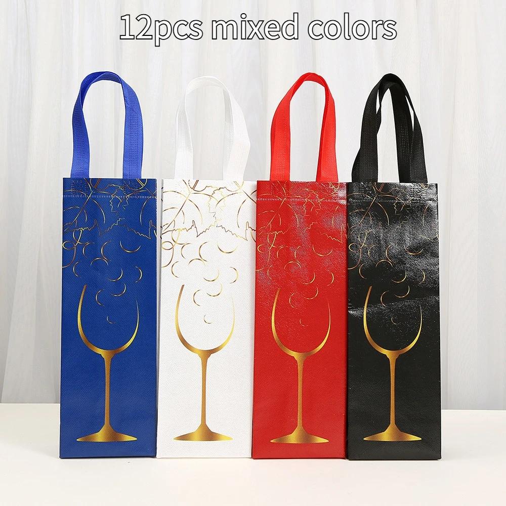 12pcs Set of Stylish Non-Woven Wine Bags, Gift Packaging Bags, Party Favor Bags, Material, Durable and Sturdy. Cup Design