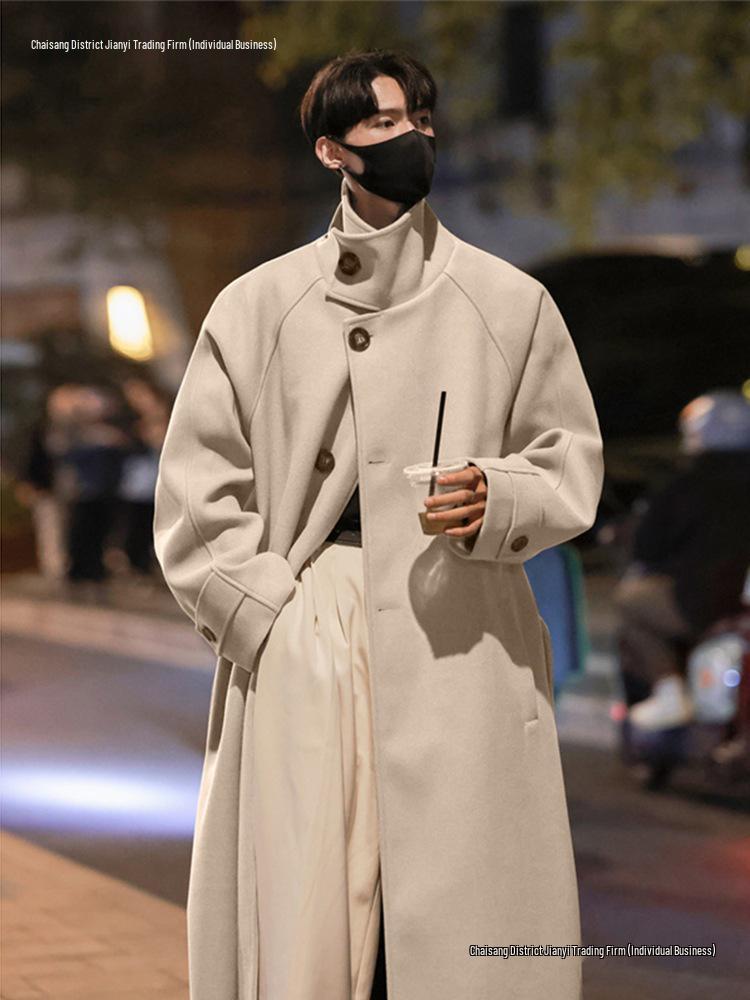 Men's Korean Style Thick Wool Over-the-Knee Trench Coat - Mid-Length, Warm, British Style Winter Jacket