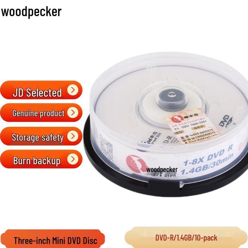 Woodpecker 3-Inch 1.4GB 8x DVD-R Discs (10-Pack)
