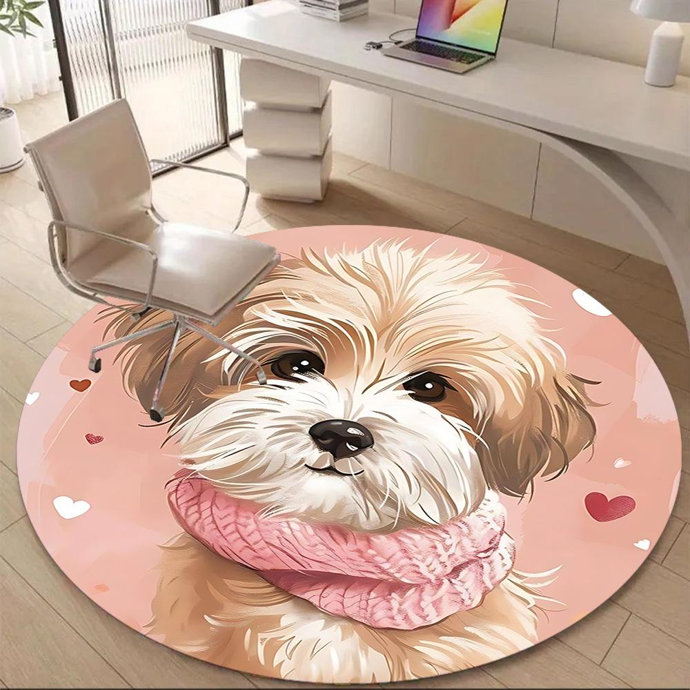 1PC Puppy Scarf Office Round Area Rug, Indoor Mat Suitable ForOffice, Under Office Chairs Bedroom Living Room Home Decor, Room Deco, F156