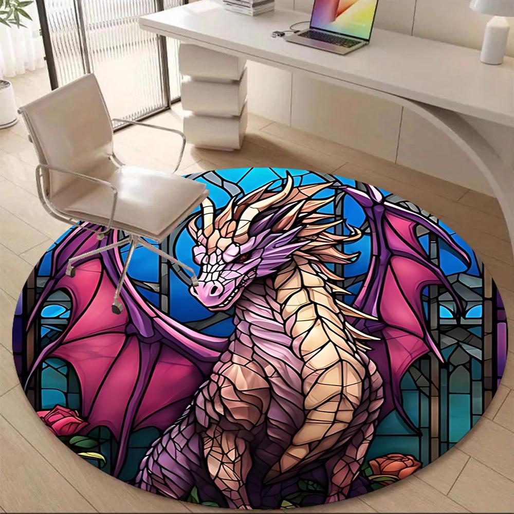1PC StainedGlass Dragon Office Round Area Rug, Indoor Mat Suitable ForOffice, Under Office Chairs Bedroom Living Room Home Decor, Room Deco, F033