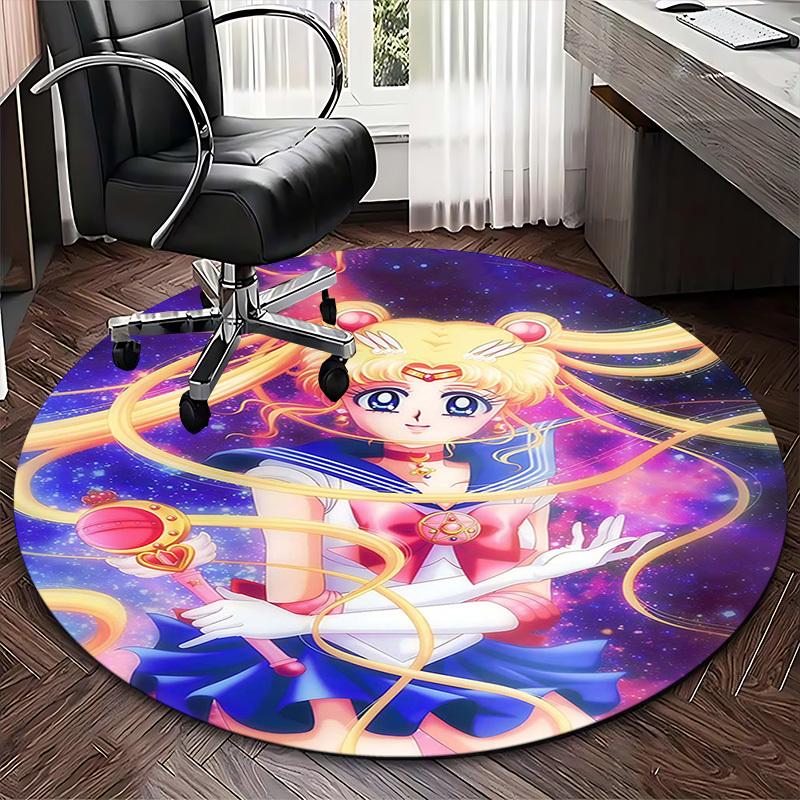 1pc Anime Sailor Moon Round Carpet Office Chair Mat, NonSlip Rug for Home Decor, Living Room, Bedroom, Game Room