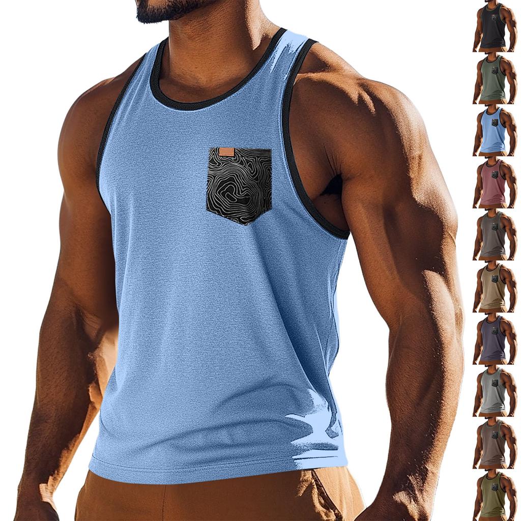 Men's Sport Sleeveless T-shirt Breathable Slim Undershirt Pocket Top Vest