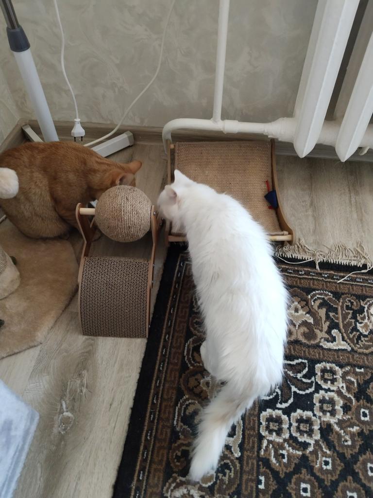 -Purpose Scratcher Featuring a Dangling Ball Toy A Tall Scratch Column Designed for Sharpening