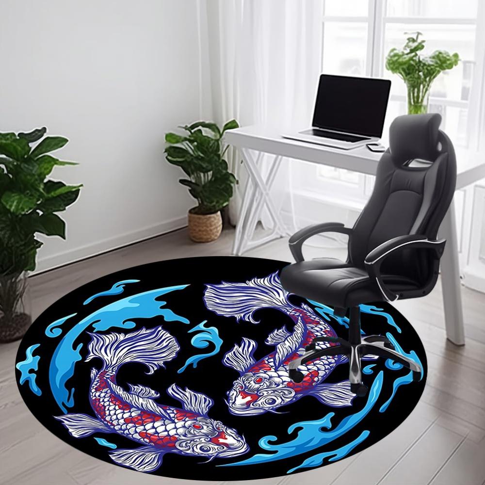 1pc Koi Fish Yin Yang Carpet, Round Non Slip Durable Large Size Office Carpet, Suitable for Office