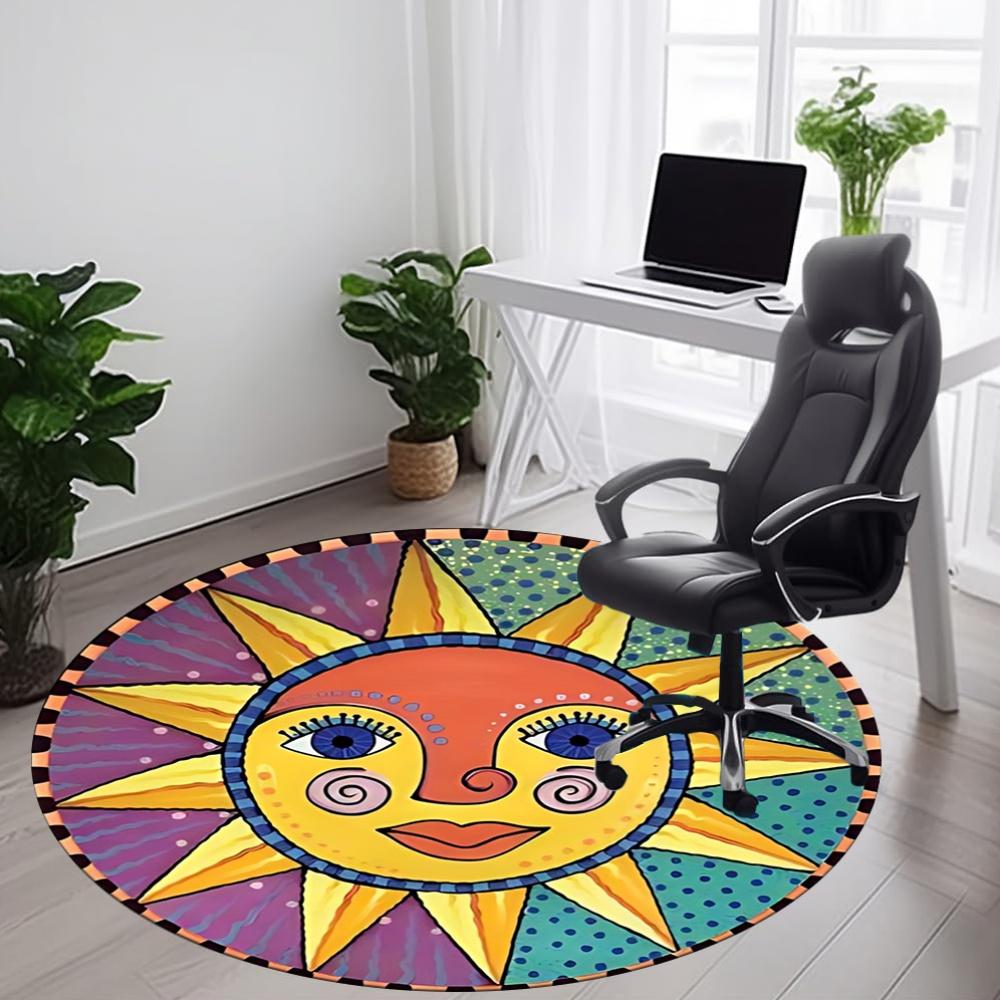 1pc Sun Mandala Carpet, Round Non Slip Durable Large Size Office Carpet, Suitable for Office