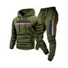 Men's Casual -color Letter Print T-shirt Set - Men's Fleece Hooded Drawstring T-shirt And Pants Two-piece Set