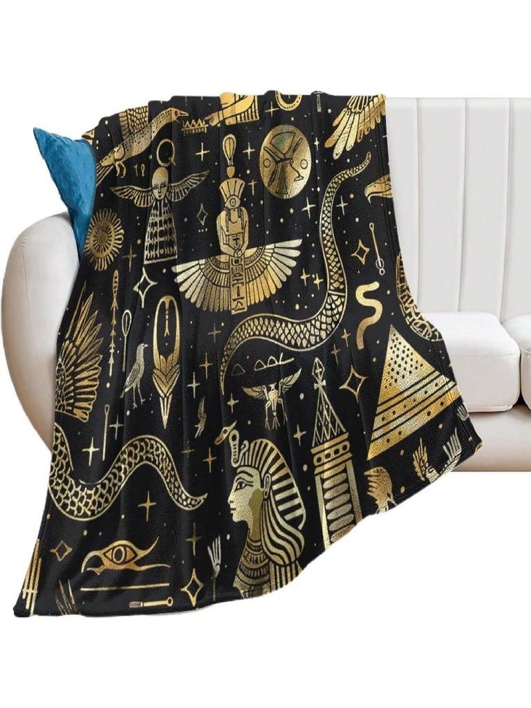 Vintage Egyptian Ancient Print Blankets Soft Cozy Bedding,Rustic Egyptian Hieroglyphics Animal Theme Blankets Throw Super Soft Bedroom Sofa