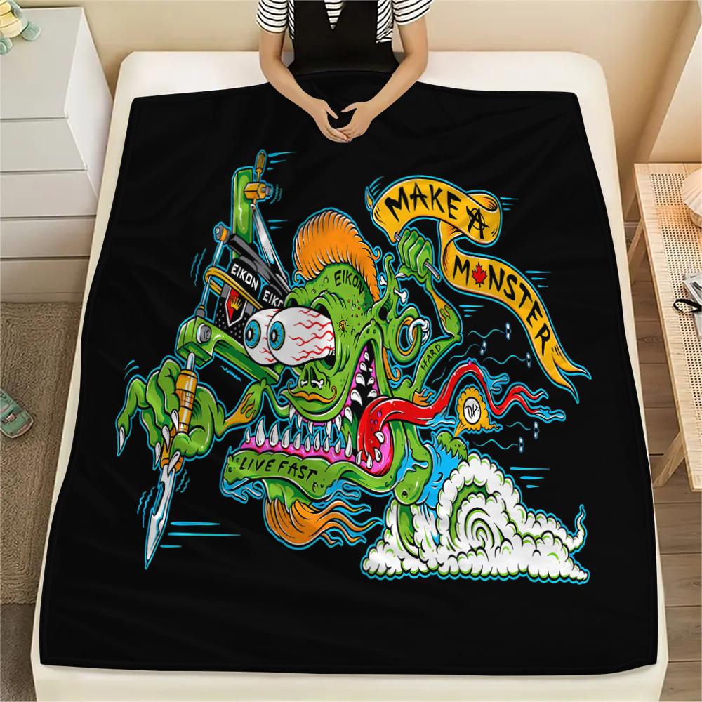1PC Rat Fink Print Flannel Blanket, High Quality All Seasons, Home Decor, Warmth and Comfort, Perfect for Christmas Gifts