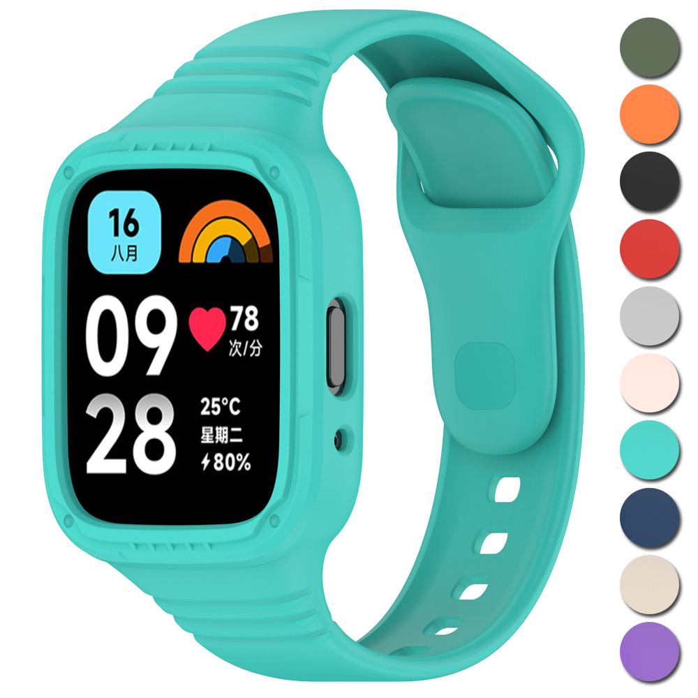 Silicone Strap with Case for Redmi Watch 3 / Redmi Watch 3 Active Strap Replacement Bracelet Protective Shell Cover