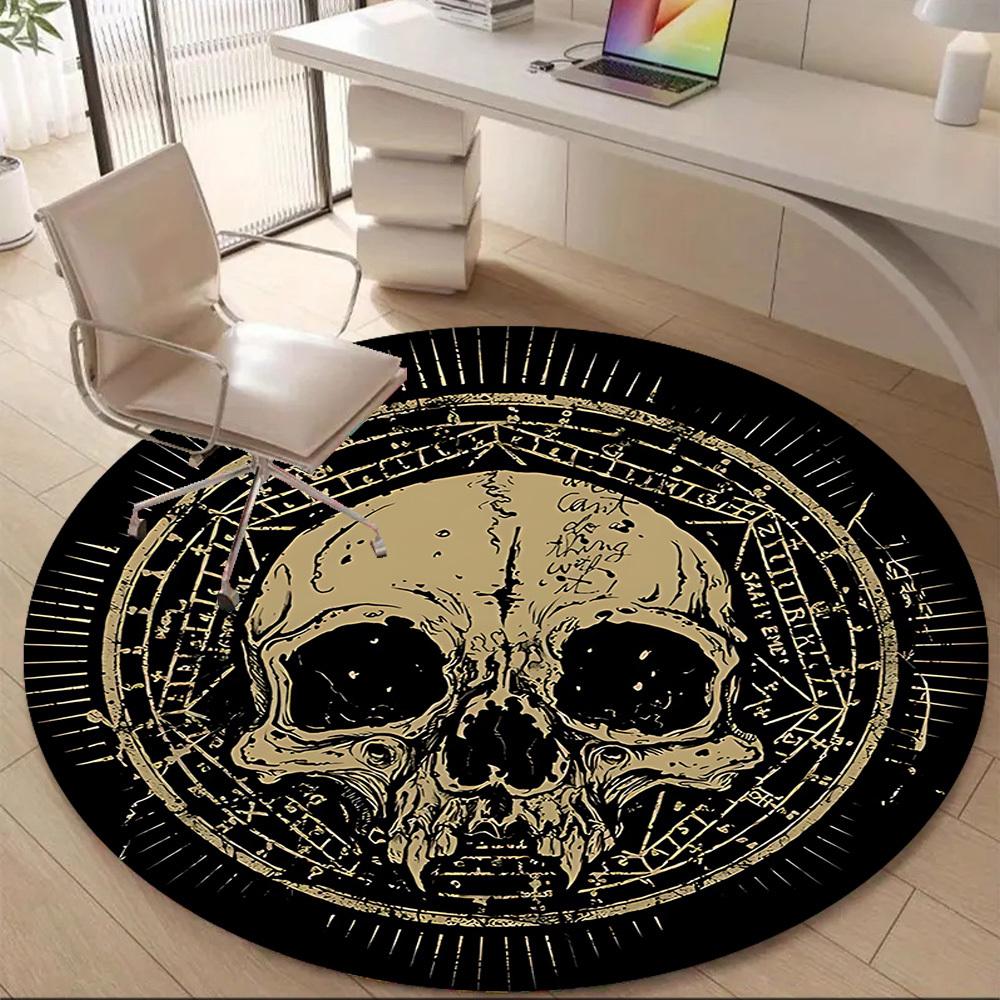 1pc Skull Mandala Office Round Area Rug, Under Office Chairs Bedroom Living Room Home Decor, Room Deco