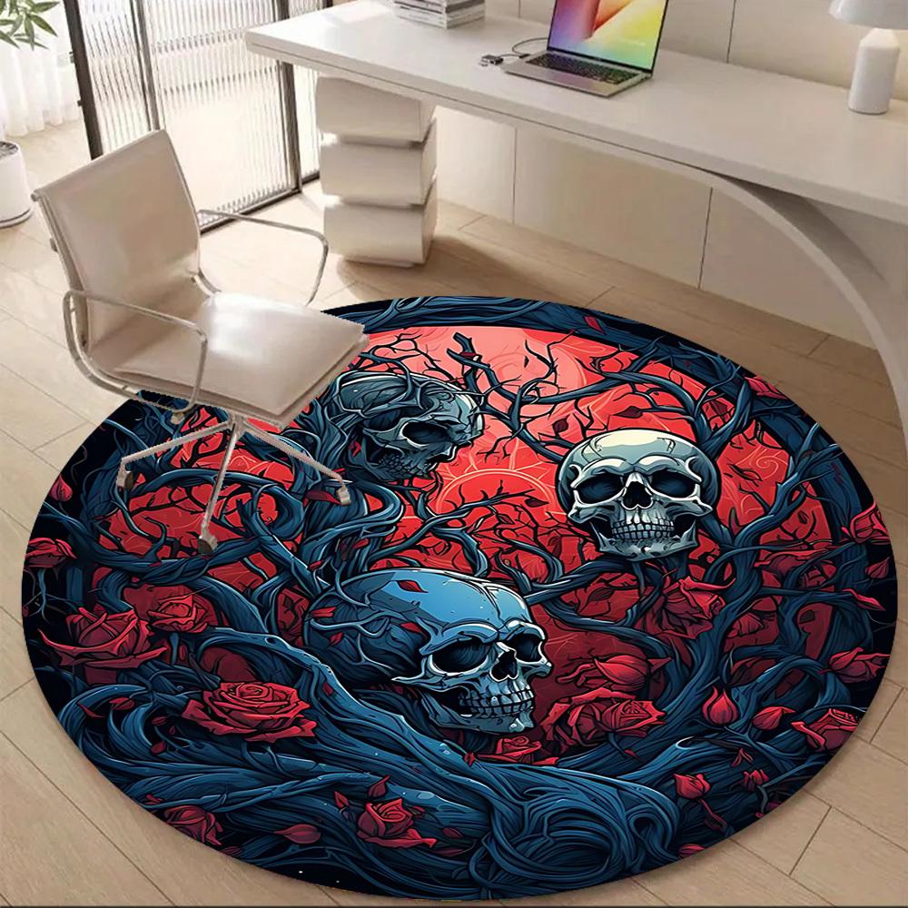 1pc Skulls Roses Office Round Area Rug, Under Office Chairs Bedroom Living Room Home Decor, Room Deco