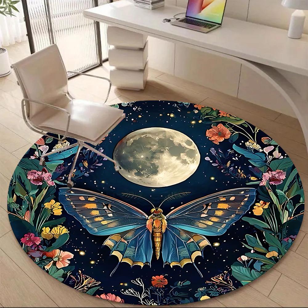 1pc Butterfly Moon Office Round Area Rug, Under Office Chairs Bedroom Living Room Home Decor, Room Deco