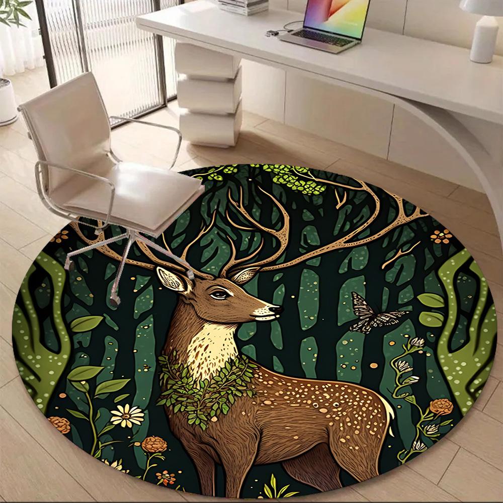1pc Forest Deer Office Round Area Rug, Under Office Chairs Bedroom Living Room Home Decor, Room Deco