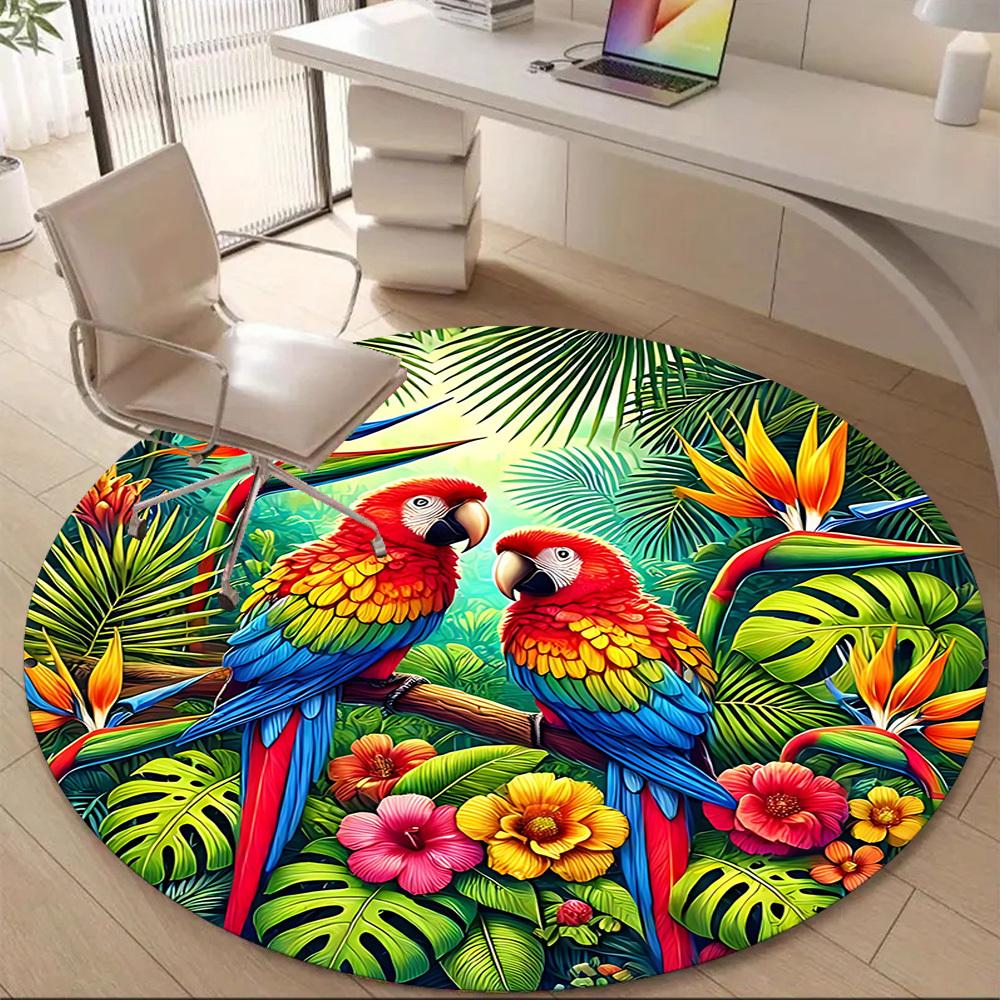 1PC Parrot Office Round Area Rug, Mat Suitable For Office, Under Office Chairs Bedroom Living Room Home Decor, Room Deco