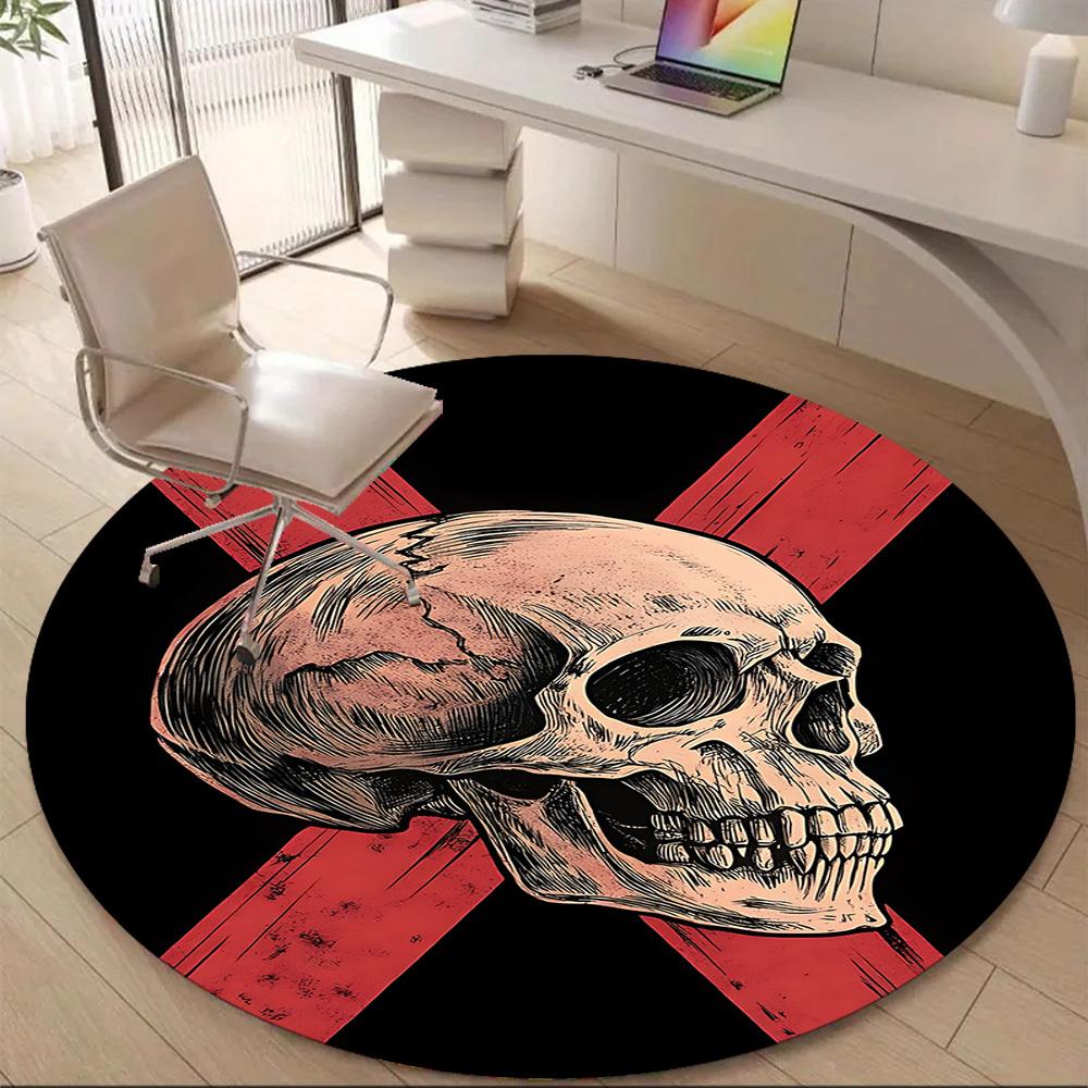 1PC Skull Crossbones Office Round Area Rug, Mat Suitable For Office, Under Office Chairs Bedroom Living Room Home Decor, Room Deco