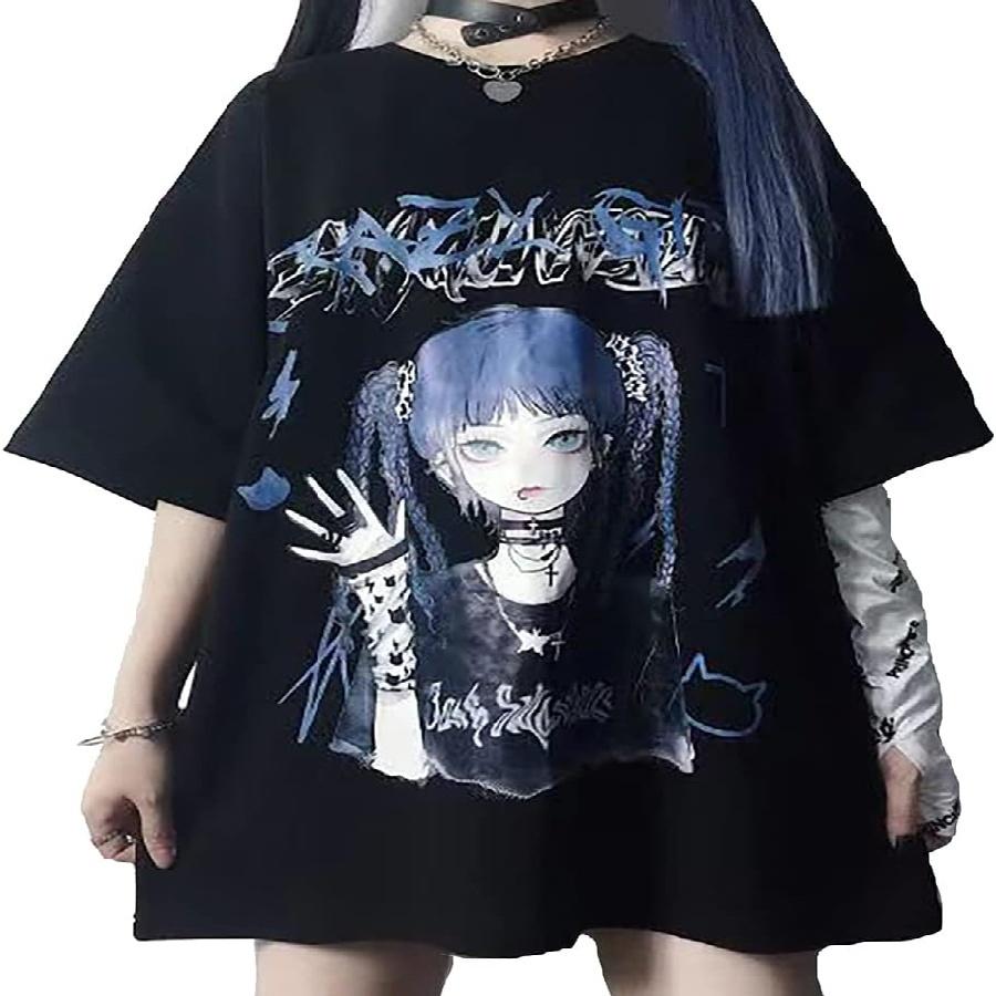 Gothic Oversized Printed T-Shirt Harajuku Street Trend Men and Women's Personality Loose Print Punk Short Sleeve