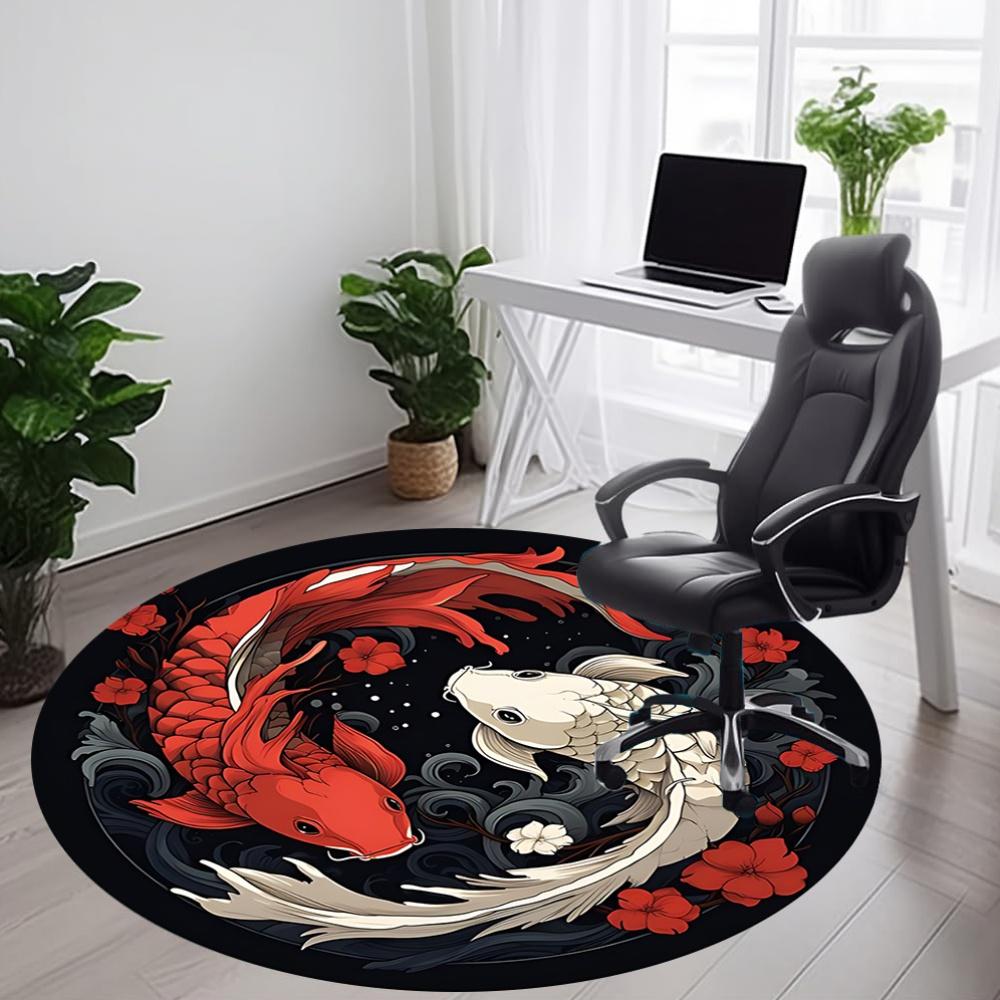 1pc Koi Fish Yin Yang Office Round Area Rug, Indoor Mat Suitable For Office, Under Office Chairs Bedroom Living Room Home Decor, Room Deco