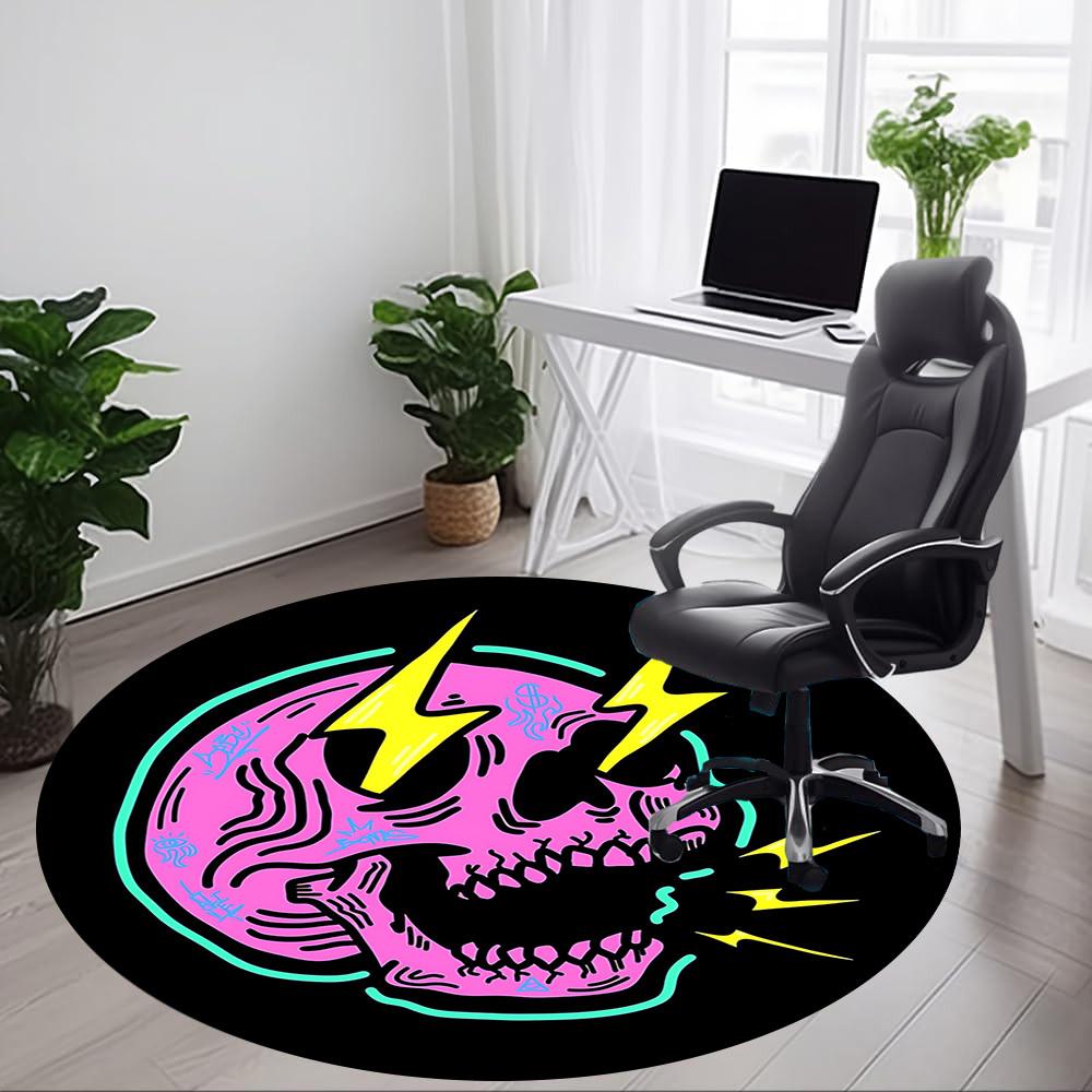 1pc Skull Lightning Office Round Area Rug, Mat Suitable For Office, Under Office Chairs Bedroom Living Room Home Decor, Room Deco
