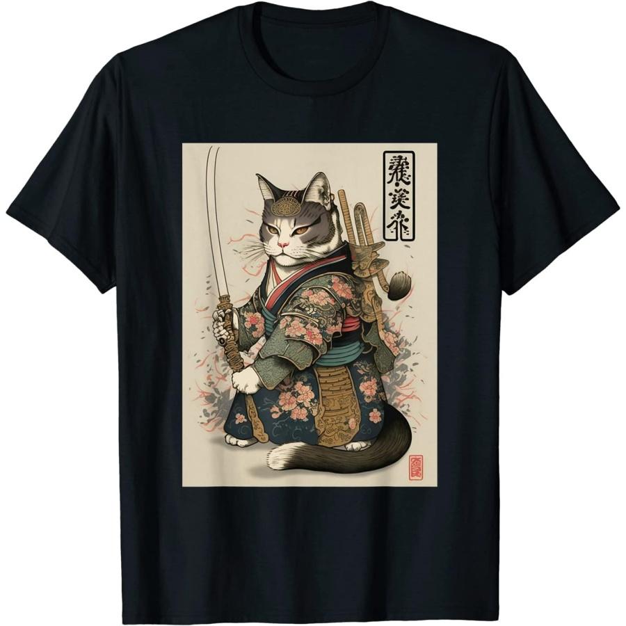 HATANSE Japanese Art Cat Ninja Anime Style Samurai Cat T-Shirt