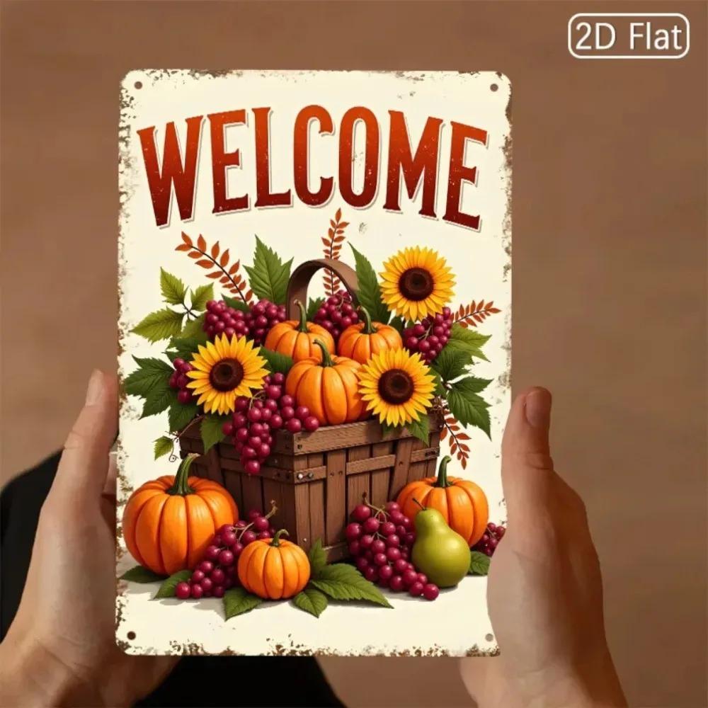 Farmhouse Welcome Sign Rustic Fall Decor PreDrilled Sunflowers Pumpkins Vintage