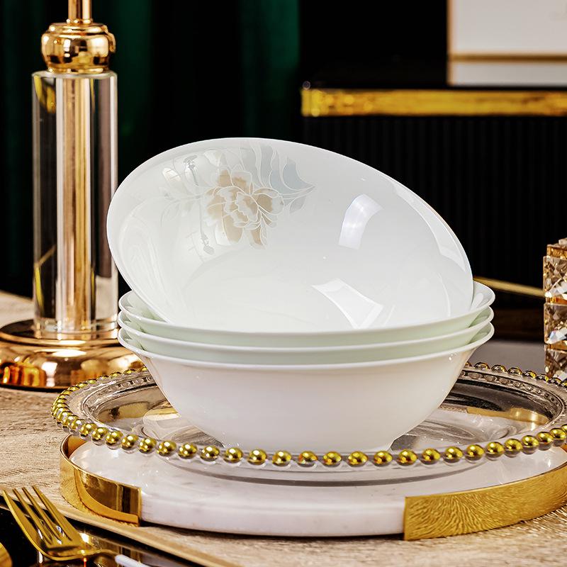 Elevate your dining experience with this exquisite ceramic bone china bowl set, designed to echo traditional Chinese elegance. This versatile set includes large soup and noodle bowls, rice bowls, plates, and a unique hat bowl, all crafted with delicate precision and adorned with intricate patterns. Each piece combines beauty with functionality, offering durability and a sophisticated touch to any meal. Ideal for both everyday use and special occasions, these bowls and plates are perfect for serving a variety of dishes, seamlessly blending into any kitchen or dining room setting.